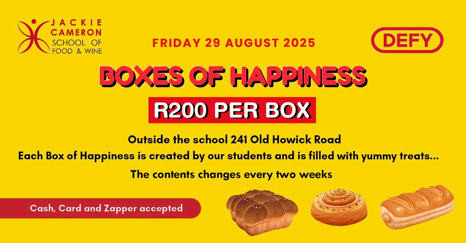 “Come grab your Box of Happiness on Friday 29 August and discover our selection of artisan breads! Students will be stationed outside of Jackie Cameron School of Food & Wine (next to the road). It’s first come first serve.”